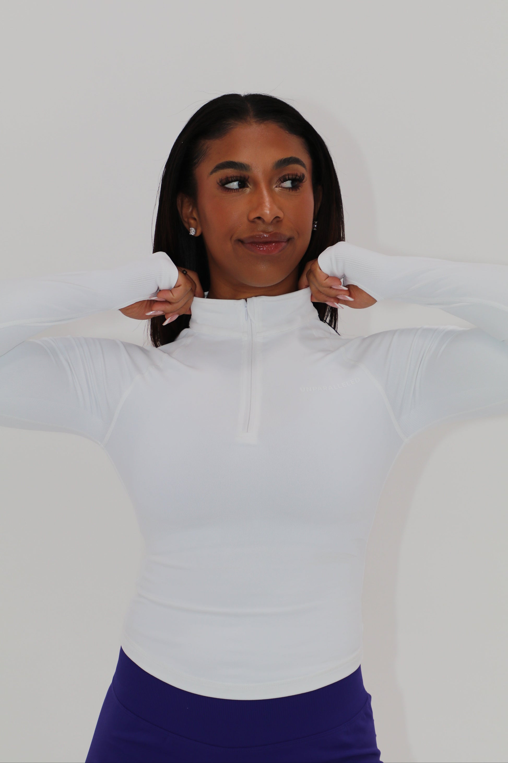 This seamless quarter-zip features a smooth, body-contouring design with a functional zip for customizable comfort and a polished look.