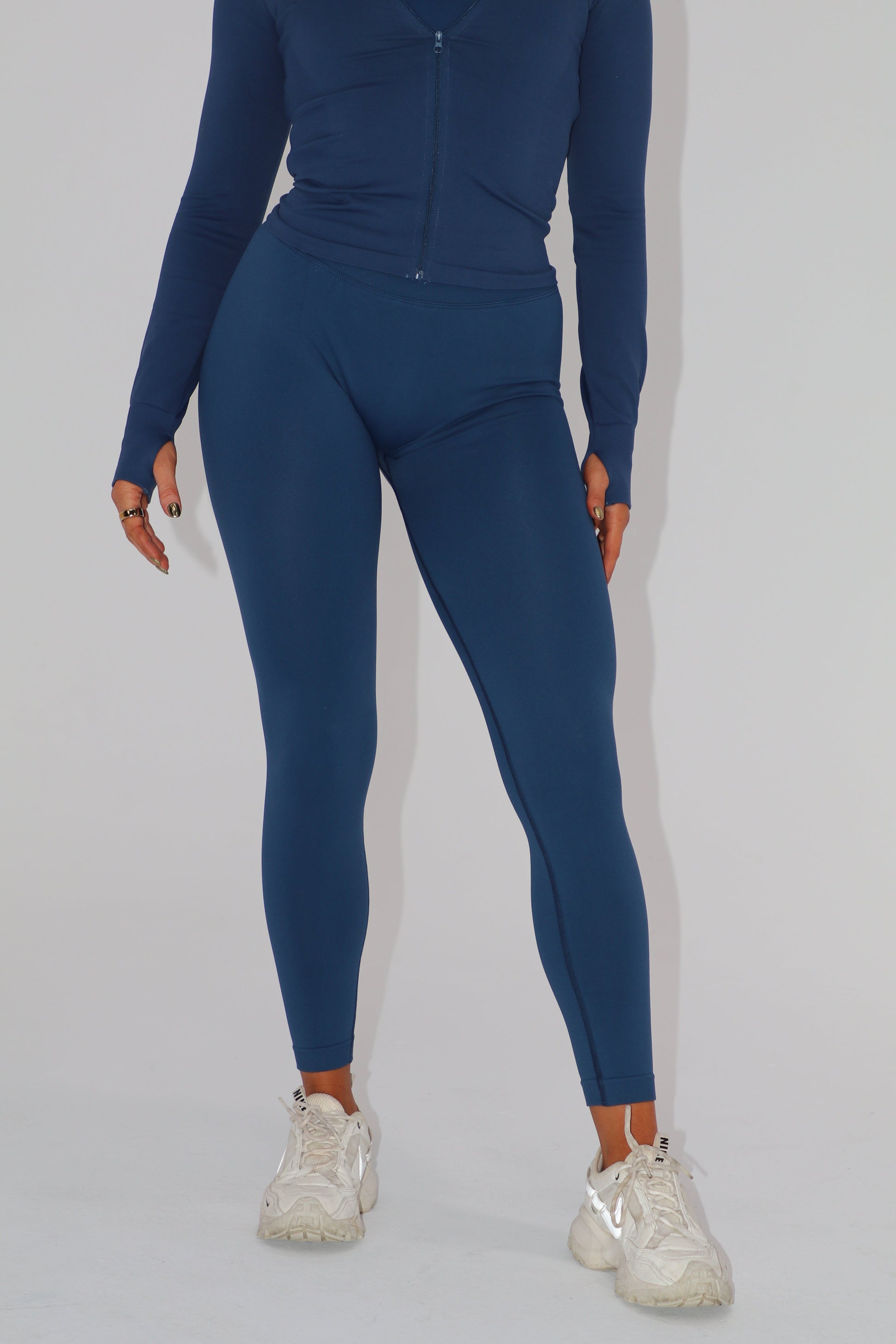 These seamless leggings feature a sleek straight-front waistband and a sculpting V-back design for a smooth, flattering fit that moves with you. This item has a V back shape and a straight shape in the front.